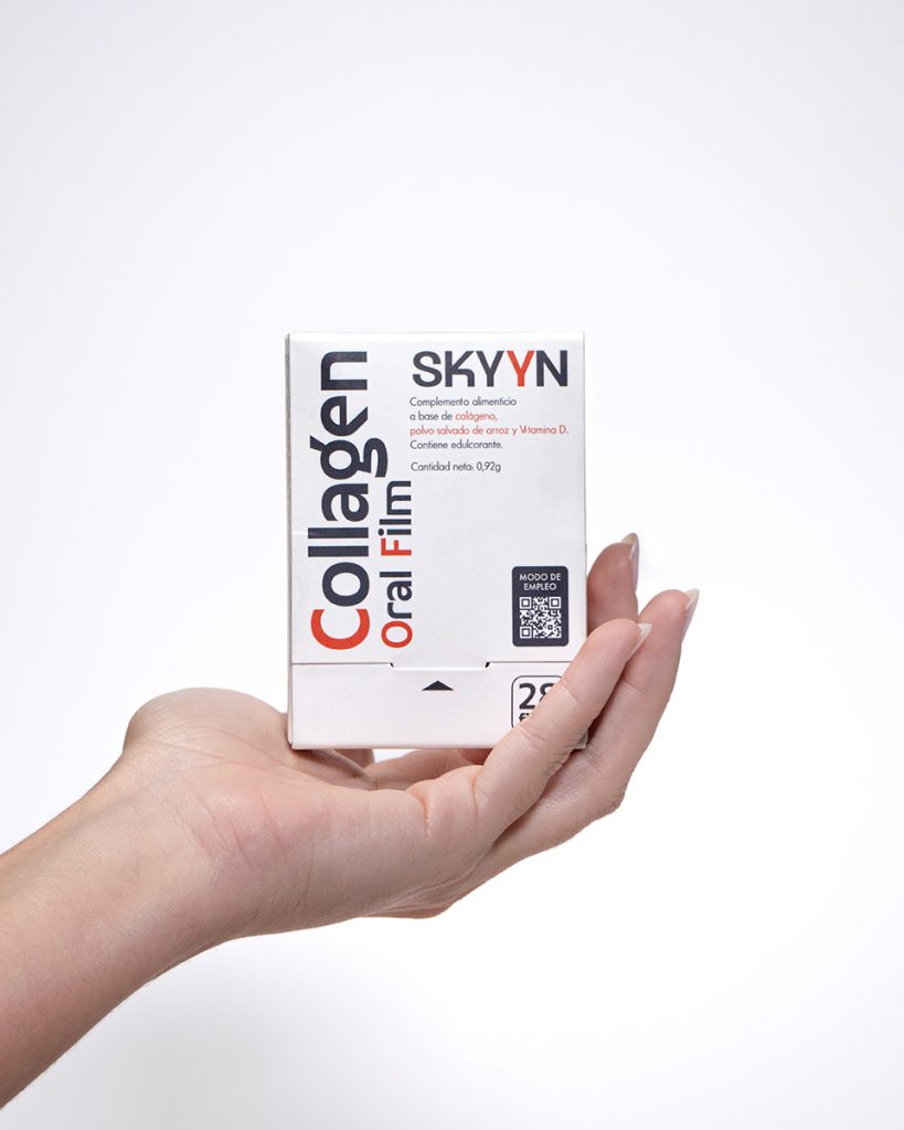 En SKYYN desarrollamos películas orales de colágeno tipo I marino de bajo peso molecular, pensadas para integrarse de forma simple y discreta en tu cuidado diario.